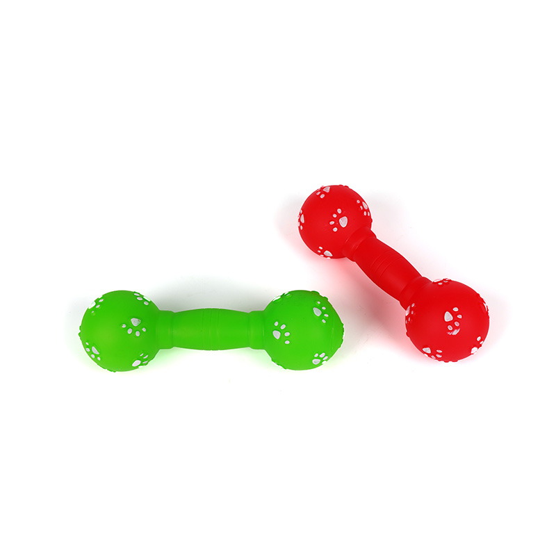 Introducing our vibrant addition to the Pet Toy Series - the Dumbbell Toy! Crafted with a fusion of red and bright green hues, this toy boasts an eye-catching design that is sure to captivate both pets and their owners. With adorable dog paw prints adorning each end, it's not just a toy, but a statement piece that adds a dash of color and fun to your furry friend's playtime.